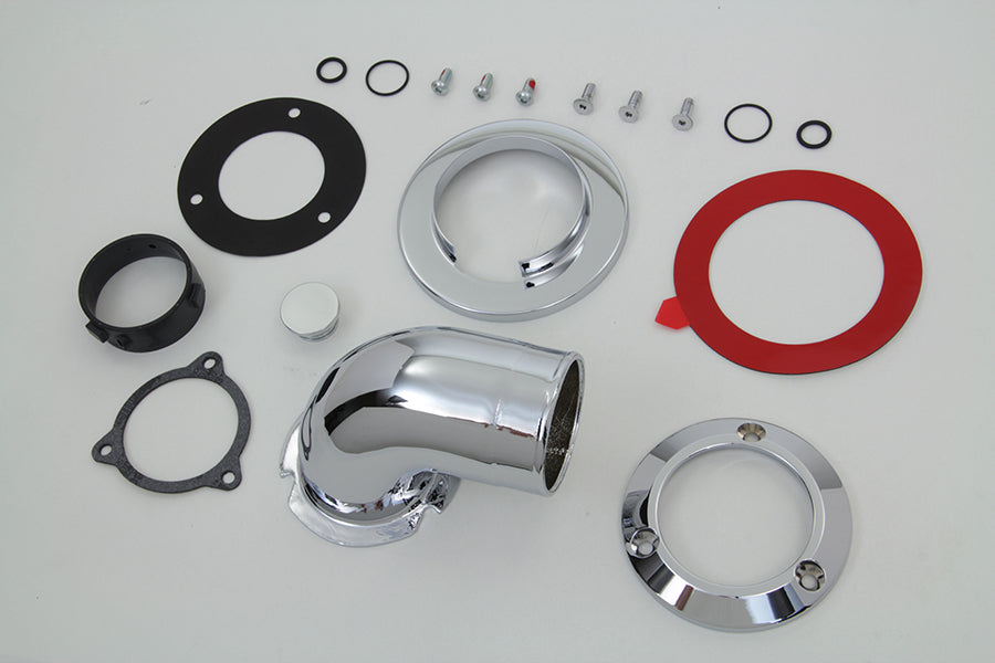 Heavy breather perfomance air cleaner kit features a chrome finish. Kit is used to enhance performance and air flow when compared to the stock air cleaner. Kit features a chrome-plated elbow and a washable and rechargeable filter. Intake tube and back plate are made from aluminum and are chrome plated. The back plate features integral breathers. All EFI-equipped models require ECM calibration. Recalibration is required for proper installation.