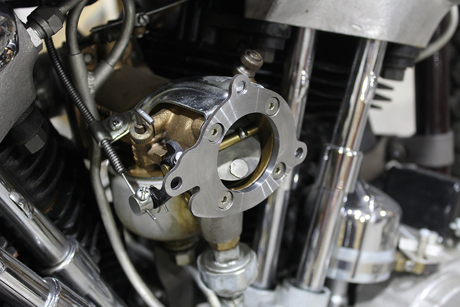 Air cleaner adapter adapts S&S pattern CV air cleaners to linkert carburetors and features a zinc plated construction. This tool adapts carburetor air intake snoots to Linkert brass carburetors. Includes 2 - 1/4 -20 x 1 allen cap screws 1 - 1/4 -20 x 3/4 hex screw 4 - 10-24x1/2 flat socket caps and 3 - 1/4 -20 nyloc jam nuts. *NOTE: Direct bolt-on to the Shorty OKO or S&S carburetors.