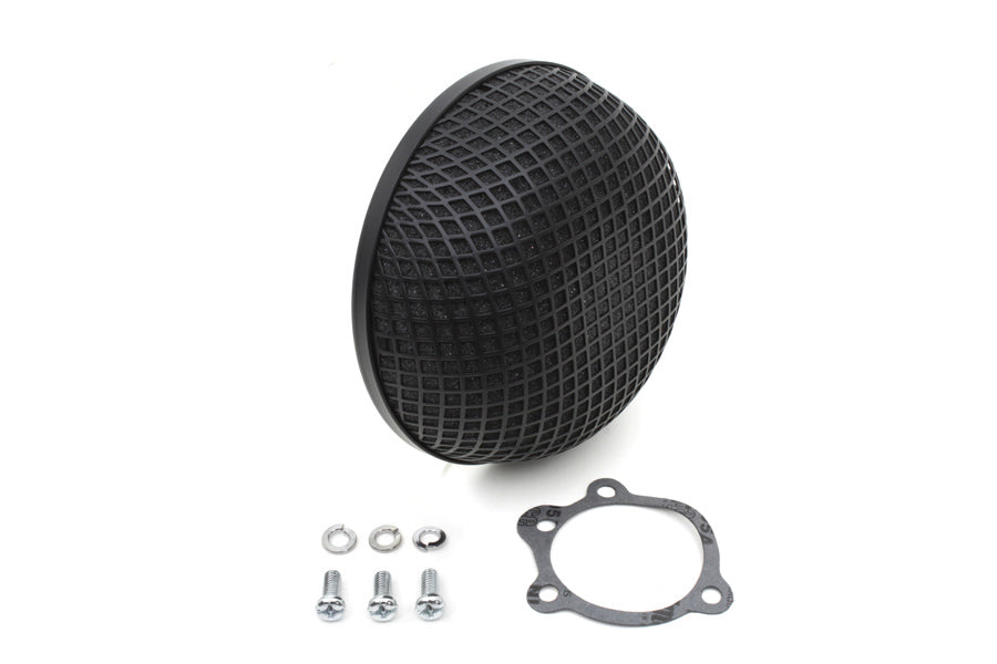 Black round mesh air cleaner includes element and is 5.5 for Bendix-Keihin carburetors.