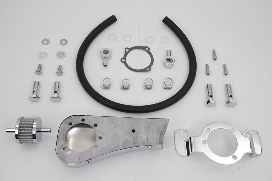 Chrome Wyatt Gatling breather snoot assembly includes breather snoot cover - without the filter billet back plate one piece billet breather and bracket with hex bolt breather bolts. This is an air snoot not an air cleaner.
