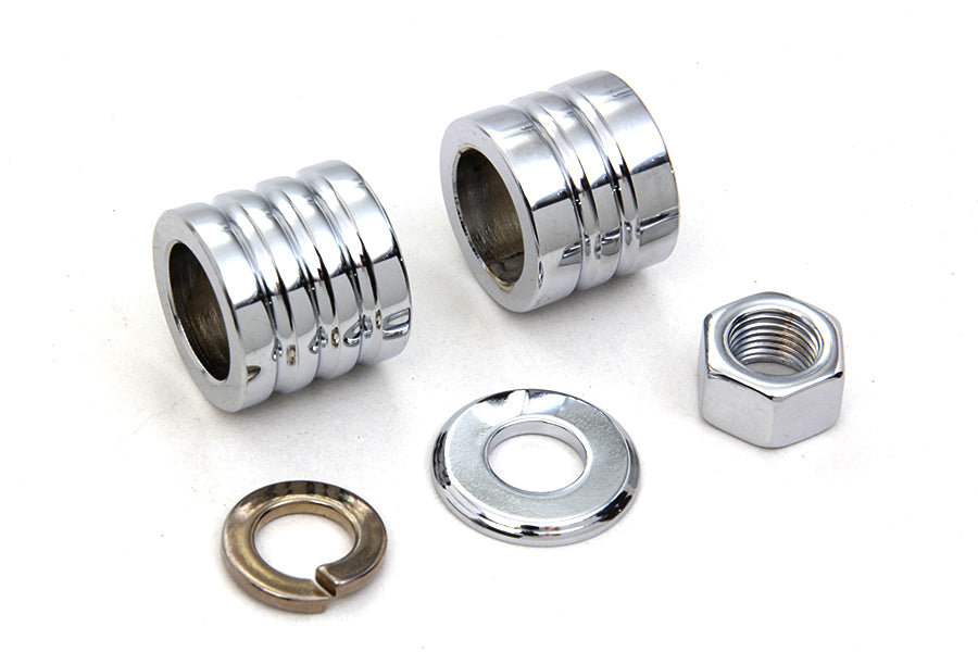 Chrome front axle spacer kit is groove style and includes washers and nuts.