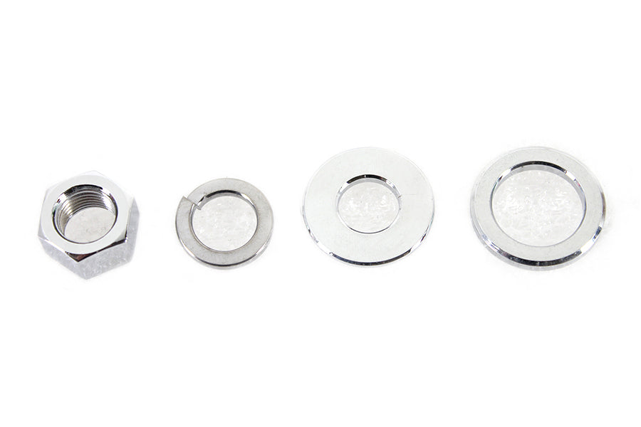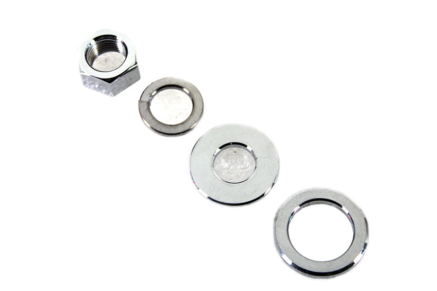 Zinc axle nut kit includes a 5/8 -18 hex nut 2 extra thick washers and 1 lock washer. For use on square swingarms. For 3/4 axles universal. *NOTE: Sold as a 4 piece kit.