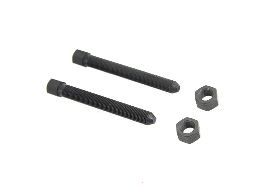 Rear chain adjuster with a parkerized finish. Chain adjuster features a 3/8 - 24 thread with a hex head.