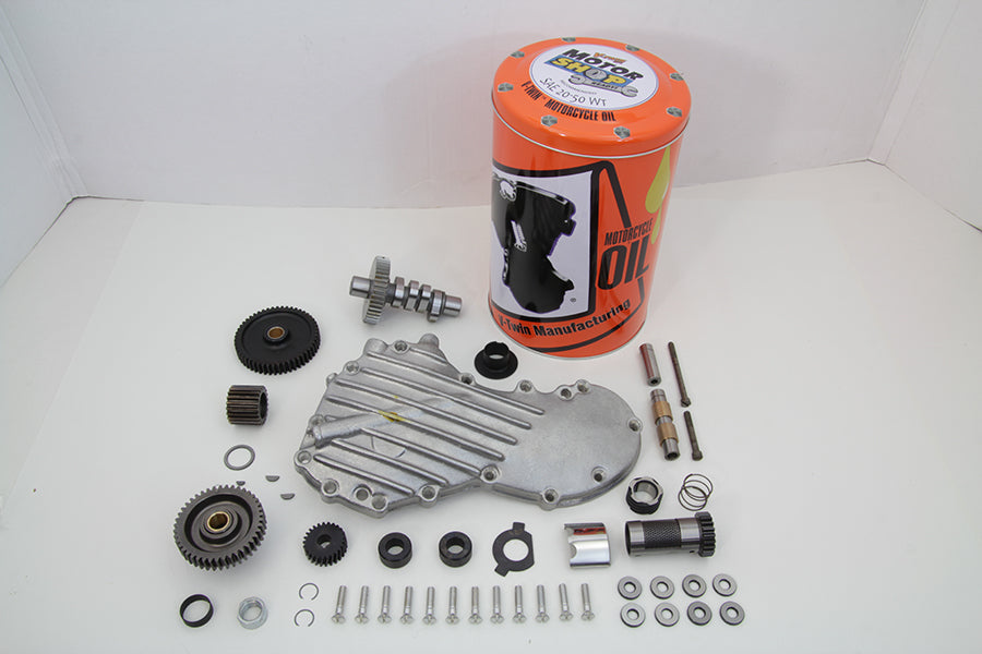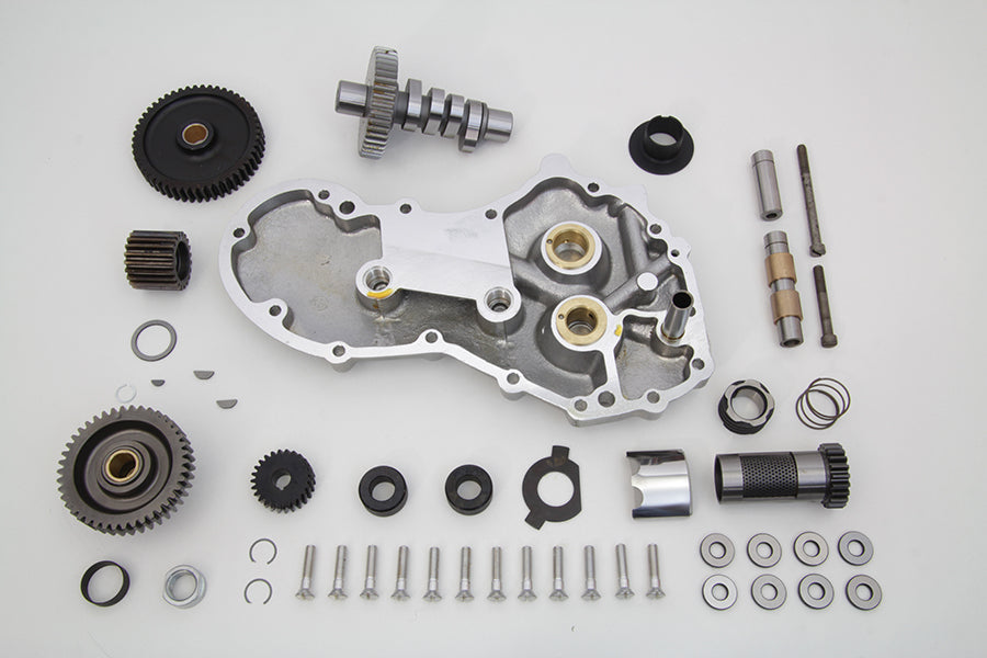 Panhead cam chest kit includes a natural finish cam cover and all internal parts. NOTE: Check the pinion and cam gears tolerance during assembly.
