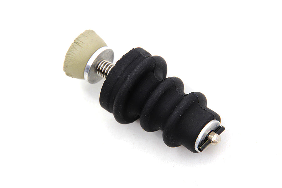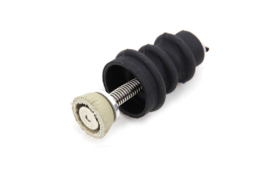 Tillotson carburetor pump assembly includes leather pump piston with shaft rubber boot and spring that are assembled. Angle bracket not included.