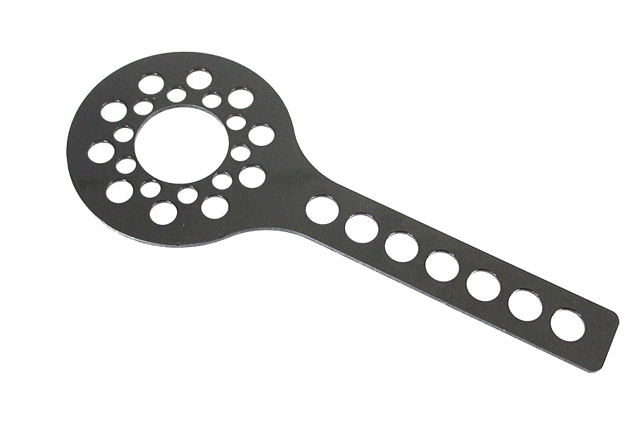Drum hub locking tool is used to safely remove the clutch hub and motor nuts and features a black finish. For 1941-1984 Big Twin 4-speed models only