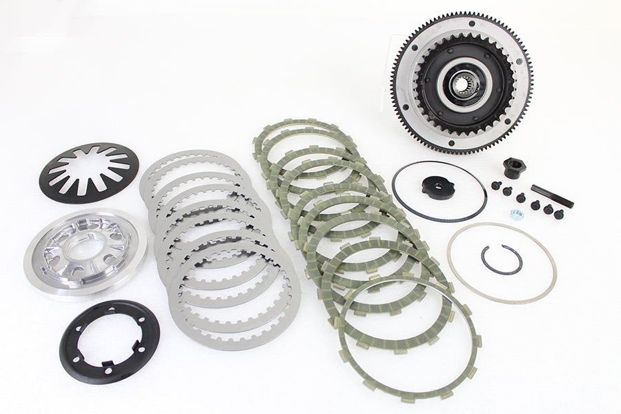 Kit features stock style components for a complete clutch installation. Includes 1mm thread retainer screw adjuster jam nut left side pushrod adjuster clutch hub bearing nut clutch hub and drum clutch spring spring seat and spring clutch release plate external and internal retaining ring clutch set pressure plate steel clutch plate set. *NOTE: To use on 1998-2001 Touring models with EFI will require the front engine sprocket to be changed to a 25 tooth type.