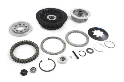Clutch pack kit includes steel and friction plates clutch drum clutch hub diaphragm spring pressure plate retaining ring and spring plate.