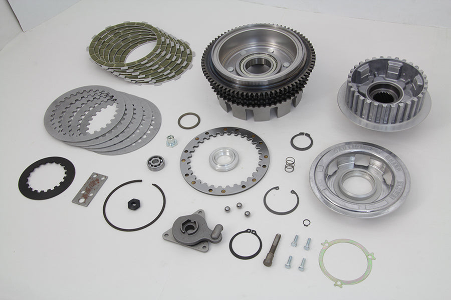 Clutch pack kit includes steel and friction plates clutch hub shell with magnets pressure plate pressure plate spring plate and all necessary hardware.