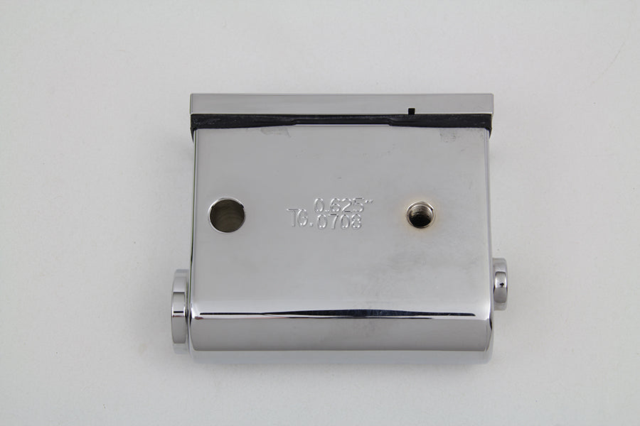 Clutch side master cylinder assembly features a chrome finish. *NOTE: For left side hydraulic clutch with 1 hole 3/8 thru and 1 hole 5/16 tapped.