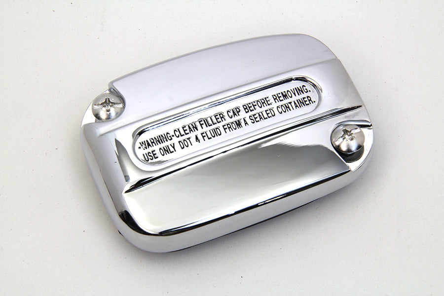 FLT clutch master cylinder cover features a smooth style chrome finish.