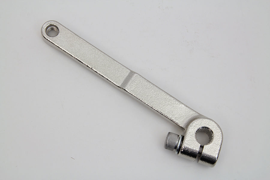 Transmission inner shifter lever features a chrome finish and is longer than stock. *NOTE: Replcament arm for #22-0453 Wyatt Gatling Driver Footboard Kit with Black Brackets.