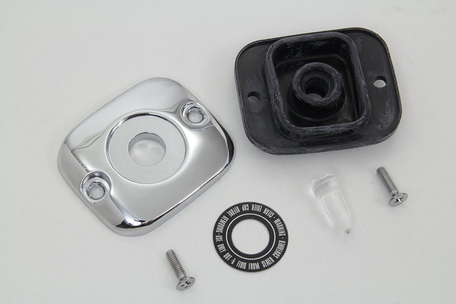 Smooth type chrome top cover for front master cylinder includes top gasket screw and view plug.