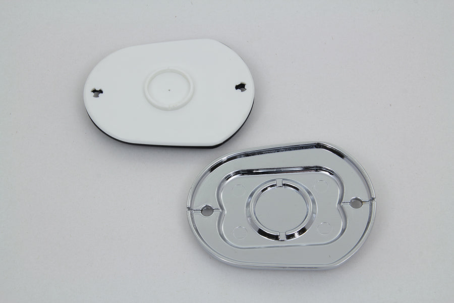 Smooth style chrome cover for the handlebar master cylinder comes with the top gasket view plug and screw. .