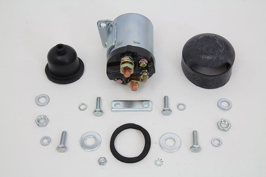 Starter solenoid kit includes zinc solenoid outer and inner rubber boot foam gasket bolts and spacer.
