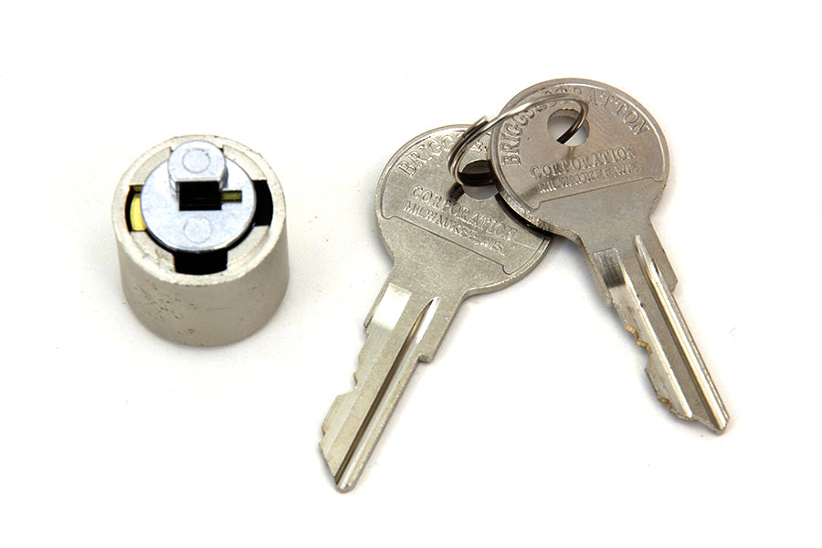 Ignition switch tumbler includes key lock and 2 full scale Briggs and Stratton style round shaped keys. *NOTE: Key tumbler has number code as original! Lock has B2-67 code.