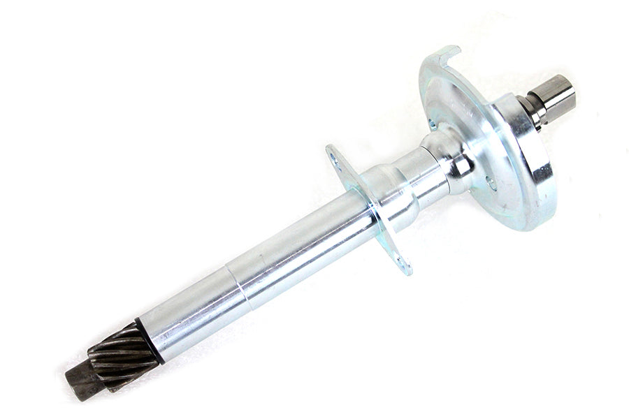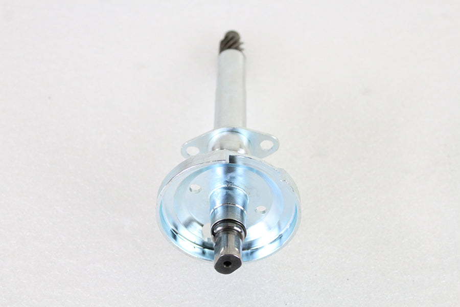 Distributor base with gear includes the shaft housing gear pin and bushings assembled. The body is zinc plated.