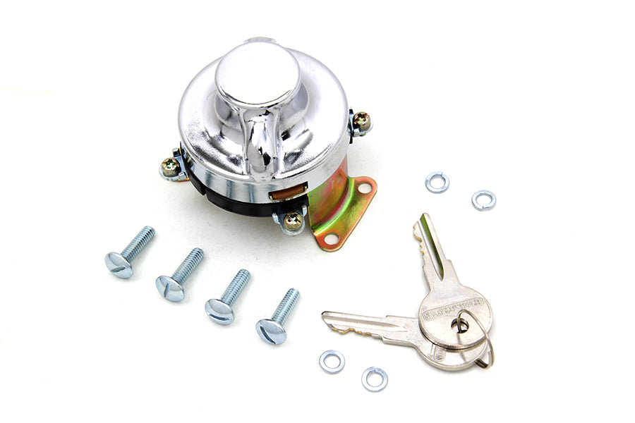 Ignition switch with 5 terminals is early type that fits 1936-1947 cateye dash base and features Briggs and Stratton style die cast numbered lock assembly and tumbler with 2 keys. Includes two Briggs and Stratton round headed keys OE type tumbler replica top and cover fits as original and B2/67# lock assembly. For mounting purposes this also includes four 8-32 x 5/8 slot round head screws four 3/16 x 3/8 split lock washers and five 6/32 x 1/4 terminal screws. *NOTE: Switch is produced with new tooling for both flip and body cover.