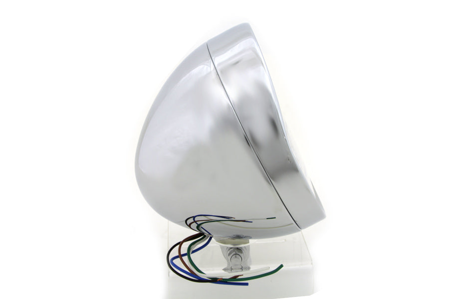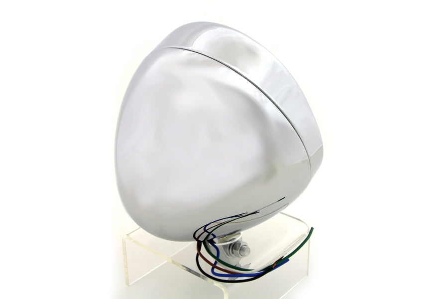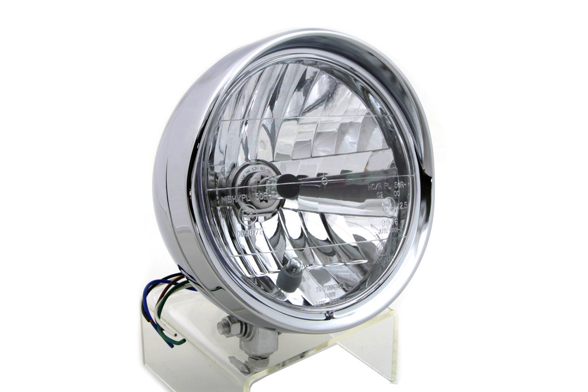 Steel chrome 6-1/2 headlamp with visor H-4 unit and mount block. *NOTE: For show or decorative use only and are not D.O.T. approved.