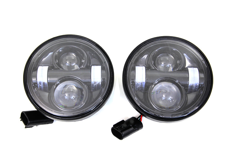 4-1/2 LED daylight headlamp unit with horizontal D-shape lens and features a black finish. Includes a left and right lamp which fits into the existing dual headlamp housing. *NOTE: For dual lamps on FLT and FXD models.