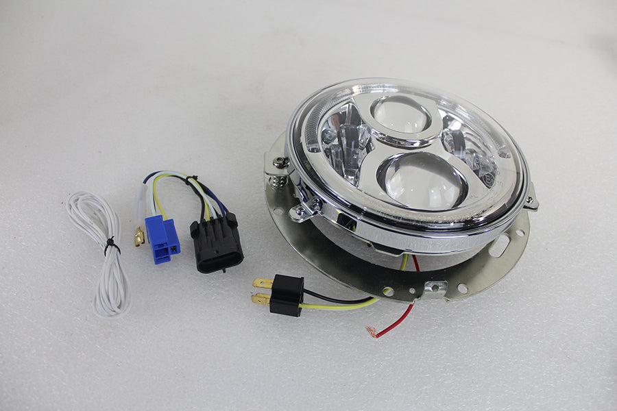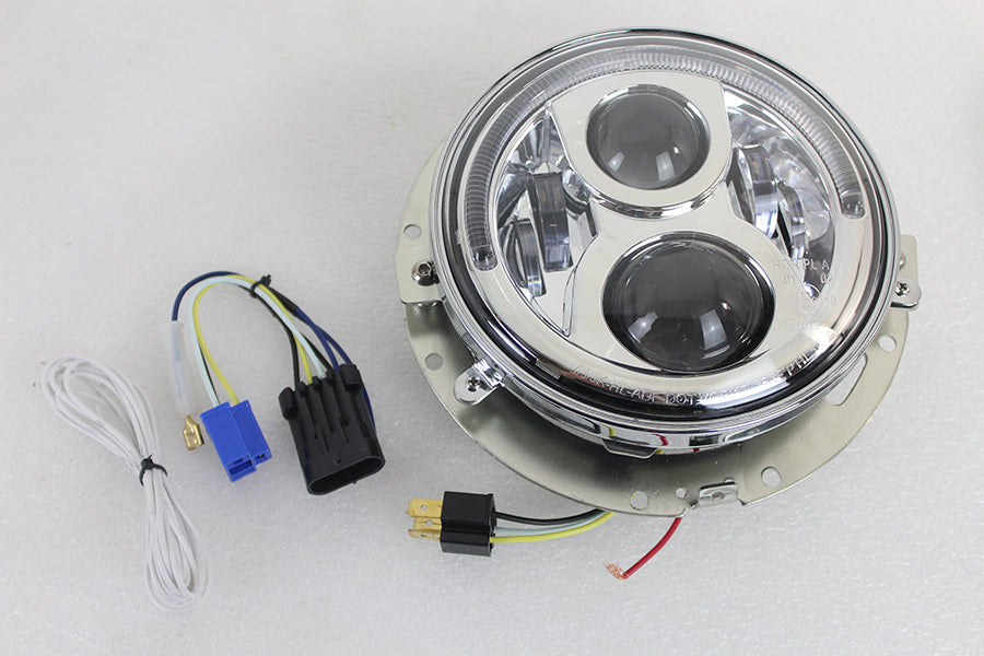 Chrome 7 LED headlamp assembly features a LED halo ring that includes the daytime running light function.