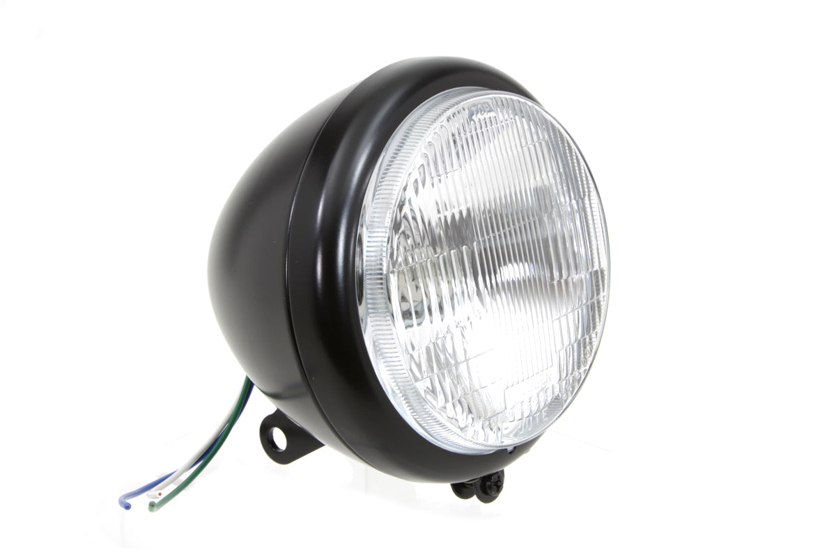 Black 5-3/4 round 12 volt halogen lamp with tear drop shape shell and updated mounting design. Order bracket separately. Headlamp is FXSTS mount type. *NOTE: For show or decorative use only and are not D.O.T. approved.