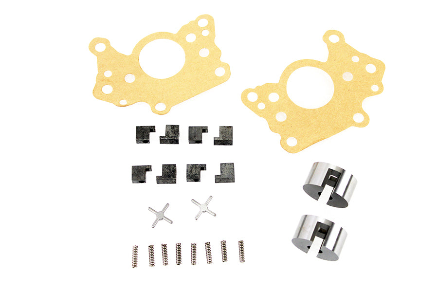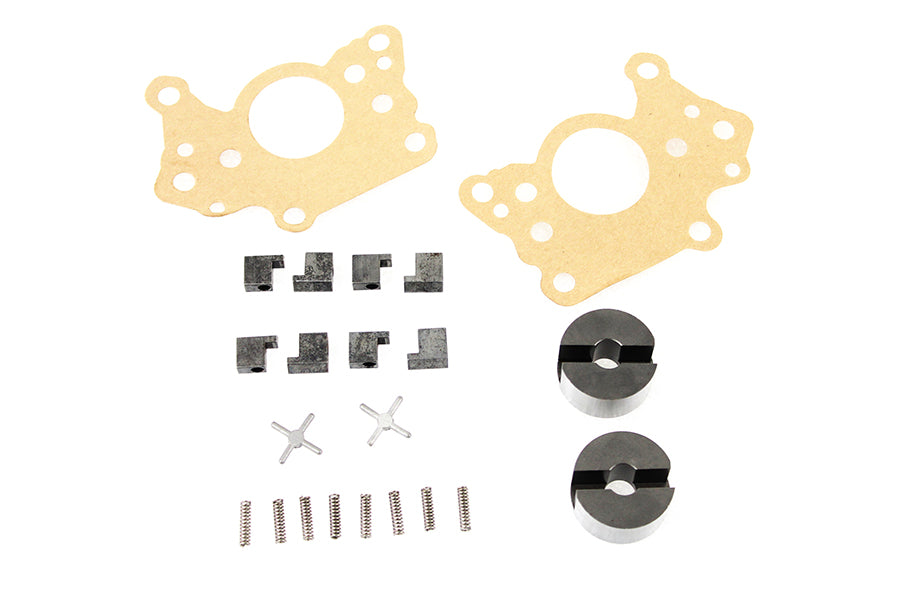 Feed pump upgrade for cast pump flat type as on 80 Side Valve and late G models. Includes rotor with 4 vanes for added oil pressure! Installation will require using muliple gaskets. Each rotor will require the back surface to be sanded down to each specific motor. *NOTE: For the early model short feed pump.