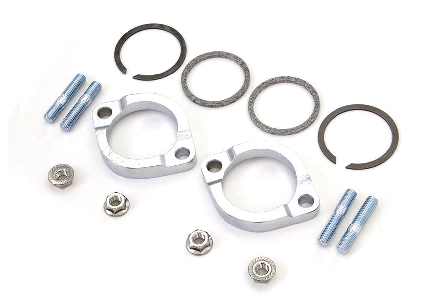 Exhaust port flange kit includes 2 flanges 2 gaskets 2 snap rings 4 nuts and 4 studs.