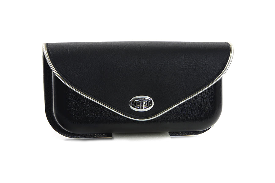 Black windshield pouch with silver edge trim. Mounts to stock 1949-1984 windshields.