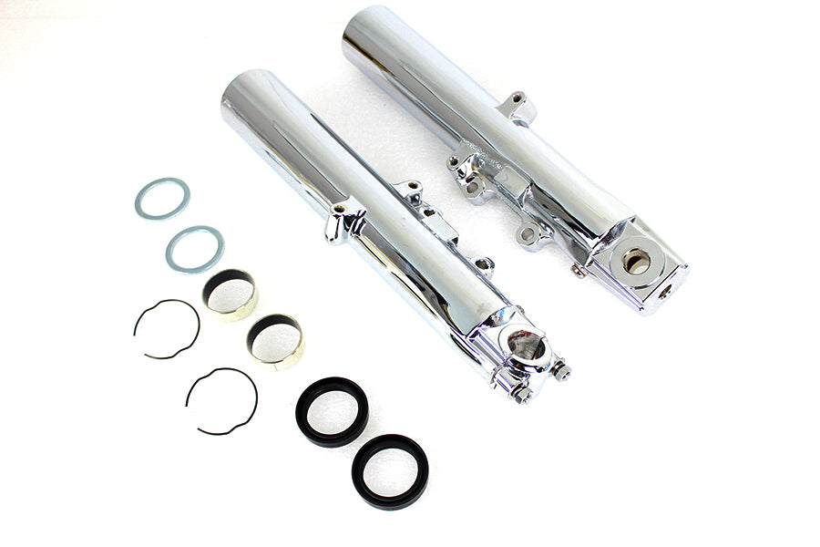 Chrome fork slider set for 41mm tubes includes seals spacers clips lower stops and extra drain plugs.