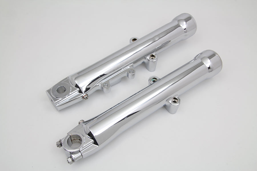 Chrome lower fork slider set includes right and left side and axle end cap. Order seal kit separately.