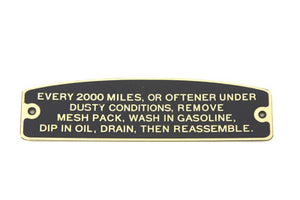 Linkert Brass Air Cleaner Instruction Tag 1941 / 1965 FL 1941 / 1948 UL 1941 / 1952 WL