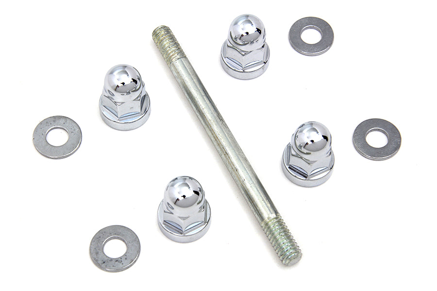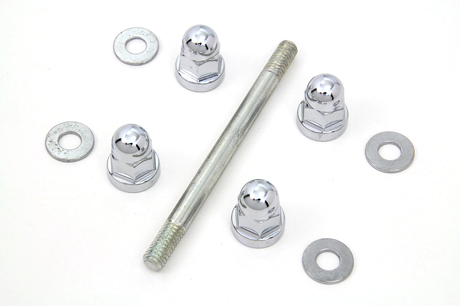 Chrome gas tank mount kit includes chrome custom acorn nuts washers and studs.