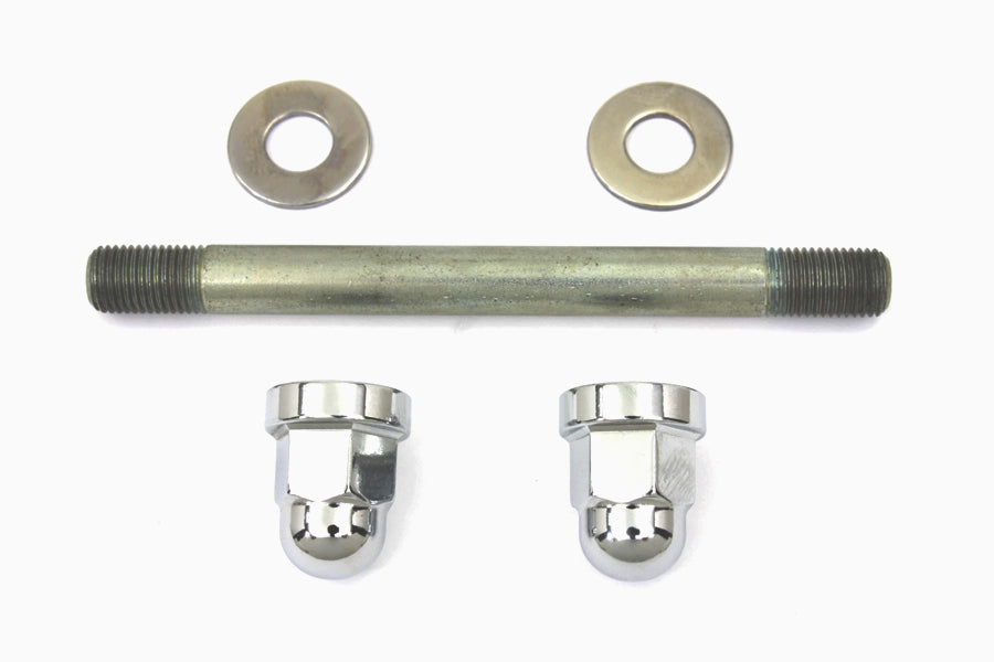 Chrome gas tank mount kit includes acorn nuts washers and stud.