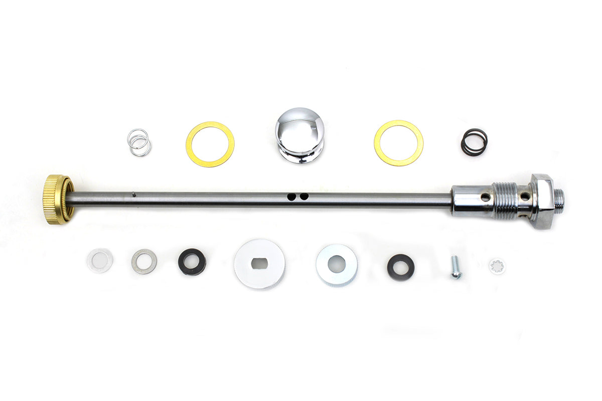 Gas shut-off rod kit includes rod chrome knob chrome seat and washers. The top cap finish is brass/chrome and the seat finish is chrome. order fuel filter and line separately.