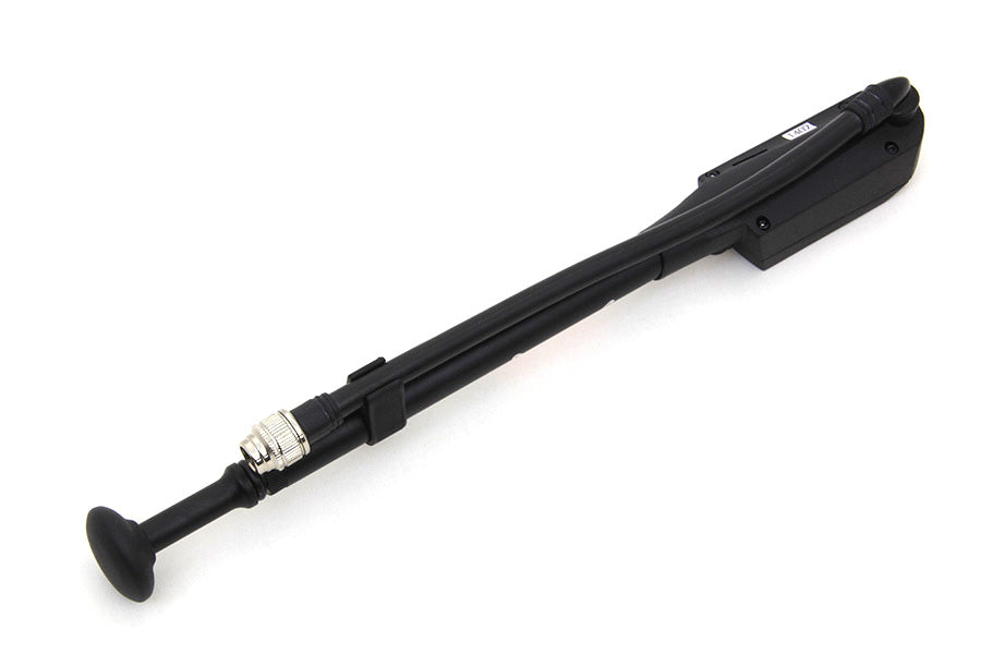 Shock pump features a digital pressure gauge with a PSI range of 0-300. Shock pump tool is for use with Touring air suspension components. The pump adjusts the air pressure anywhere on the road. Digital display can be used to check and alter the pressure in all Touring rear air shocks. The gauge is for measuring the air pressure in tires. Tool features micro bleed valve that allows precise adjustment of air pressure and the oeno loss air connector helps maintain shock pressure when the fitting is removed. Display units can be easily changed between PSI and Kpa. LCD readout operates on a long-lasting replaceable lithium coin-type battery (CR20323V).