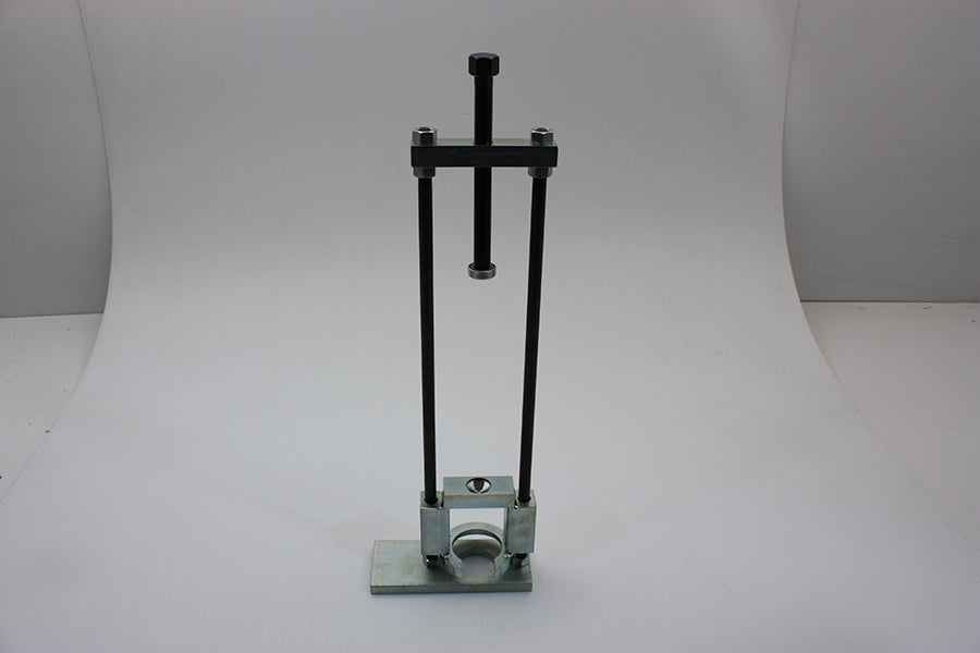 Replica shock absorber compressor tool simplifies shock absorber disassembly or assembly by holding the spring in compression while disassembling parts.
