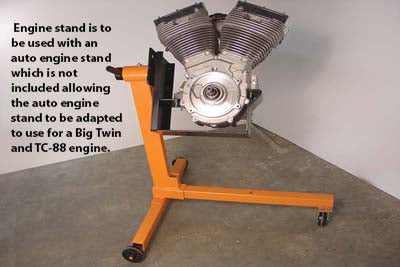 Engine stand is to be used with an auto engine stand which is not included allowing the auto engine stand to be adapted to use for a Big Twin and TC-88 engine. Use with an auto engine stand which must be purchased separately. Not for use with TC-88B engines.