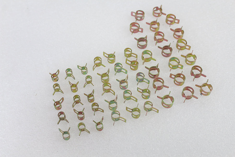 Hose clamp assortment set includes 50 clamps: 20 of 1/2 15 of 5/16 and 15 of 3/8 . Set is a spring type and is designed with a zinc finish. Assortment set includes sizes for oil line applications.