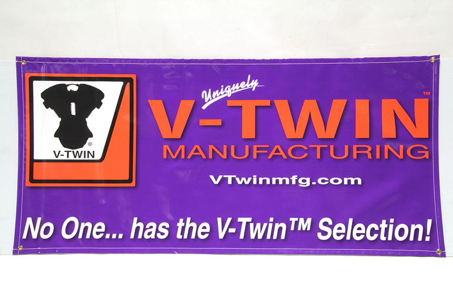 V-Twin wall banner pack includes one full color banner made from heavy gauge vinyl measuring 3' X 6' and one V-Twin product reference guide. *Note: UPS may consider this part as packaged oversize for shipment as compared to the actual weight which will result in higher shipping costs.