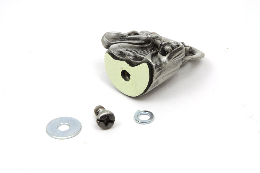 Silver grim reaper front fender tip ornament features 1-bolt stud mounting with gasket. May require some drilling.