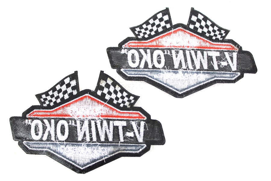 V-twin carburetor patches can easily be ironed or sewn on. Sold as a pair.