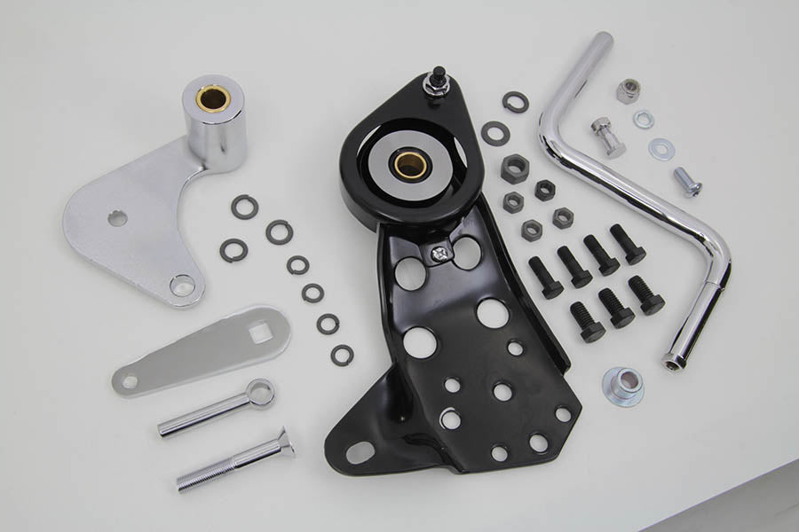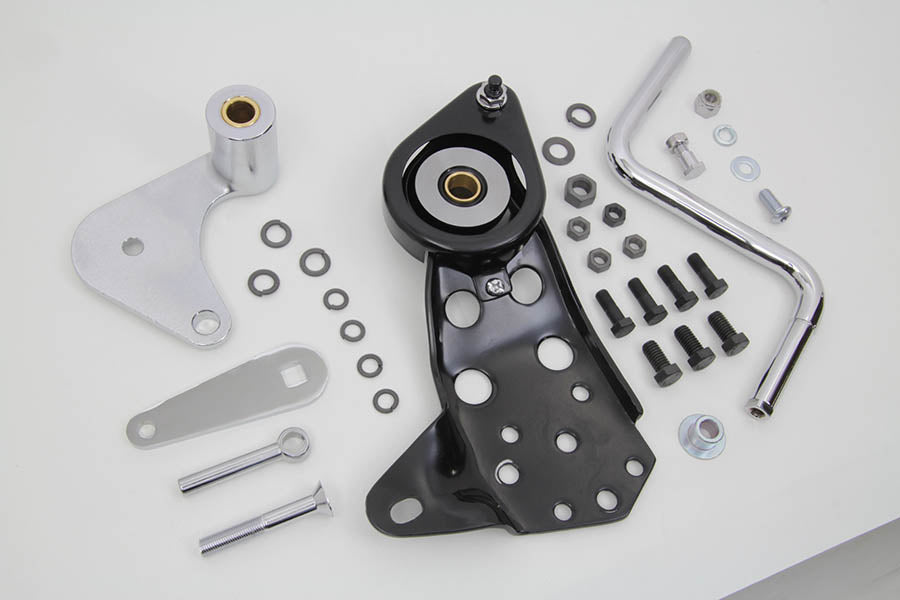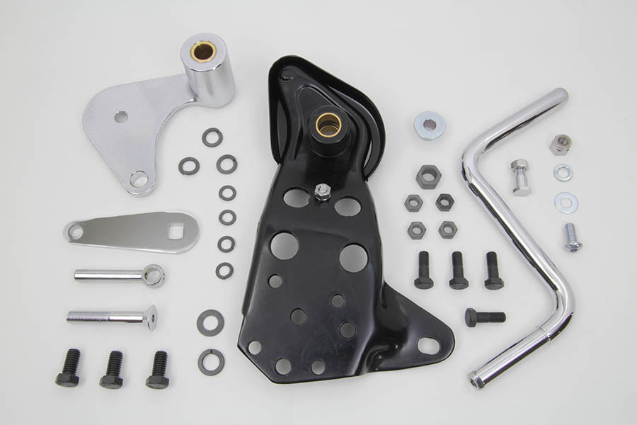 Lee style jockey pedal assembly with chrome foot clutch pedal kit includes black OE style bracket. Bracket is for mounting to frame and parkerized mount bolt kit. Order clutch pull rod separately.
