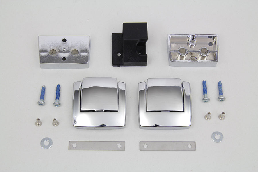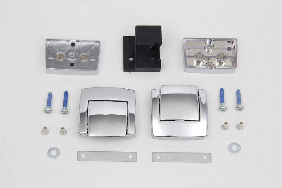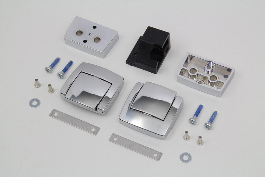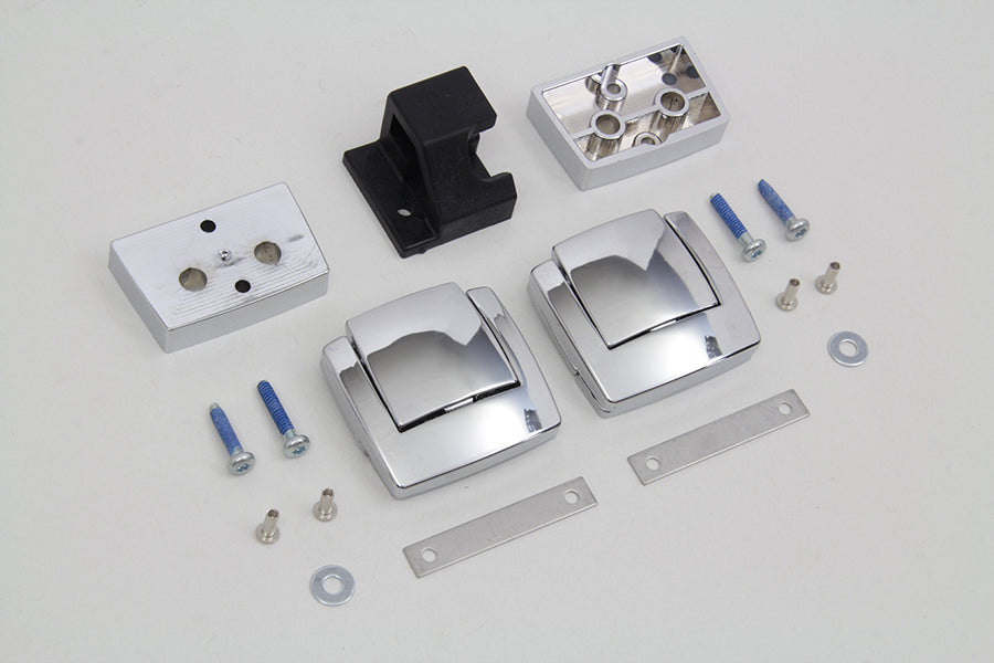 Tour-Pak chrome replacement latch kit for saddlebags. The kit includes catch spacer plate screws and rivets for installation. Die-cast latches designed to compliment original Tour-Pak hinges. Kit includes front and rear latch and all mounting hardware. For Touring and Trike models equipped with King or Ultra Tour-Pak Luggage. Will not fit Leather Razor-Pak or Chopped Touring luggage packs.