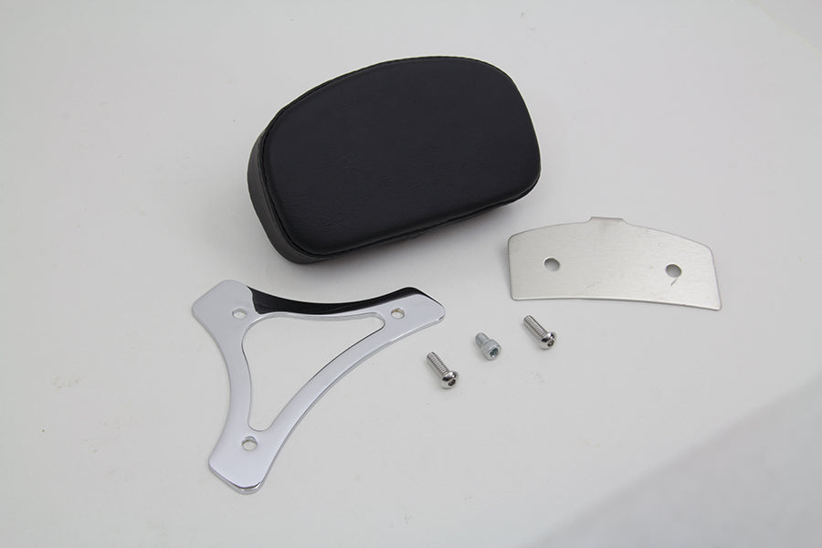 Sissy bar backrest pad is the smooth short type that fits short rail insert style sissy bar uprights. Includes chrome mount bracket.