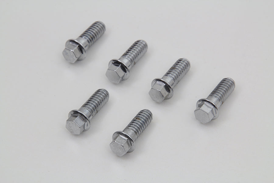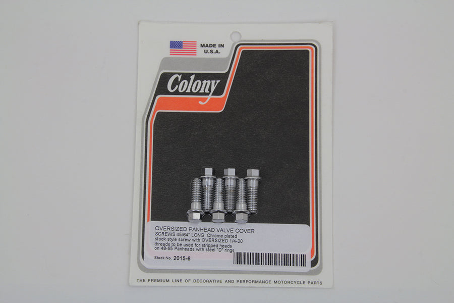 Chrome rocker arm cover screw set for steel D-ring. Screws have a 1/4 - 20 thread.