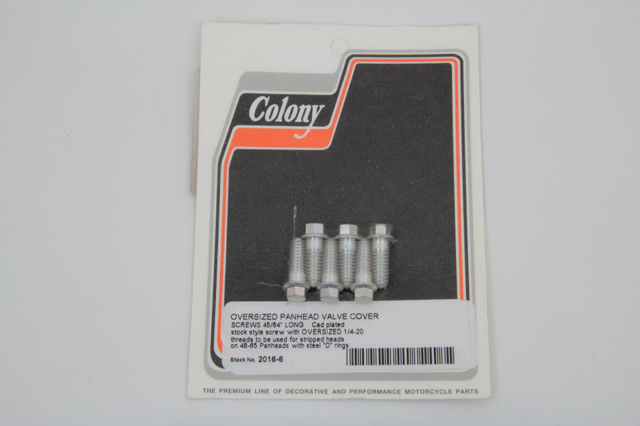 Cadmium rocker arm cover screw set for steel D-ring. Screws have a 1/4 - 20 thread.