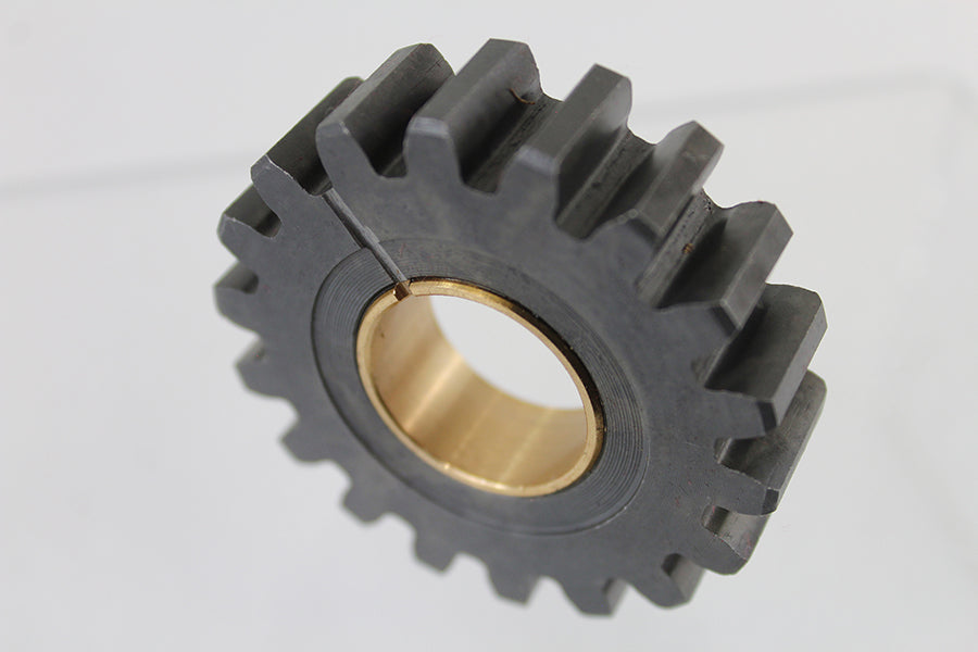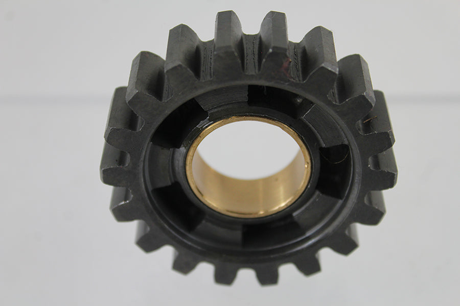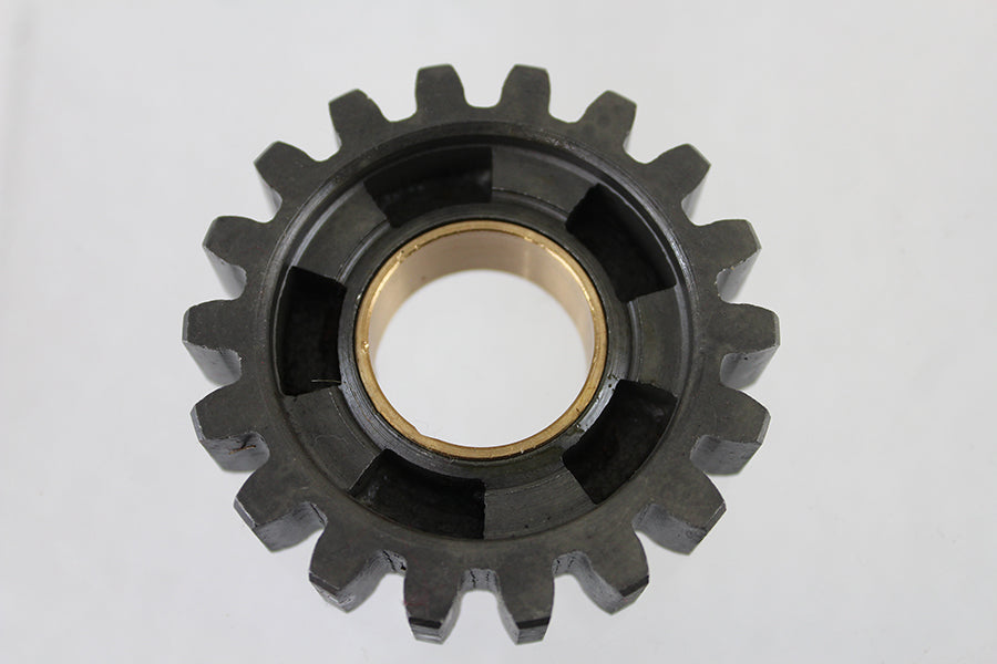 Replica 18 tooth 2nd gear with bushing is exact as OEM with a chamfer cut on gear teeth. *NOTE: Bushing is honed to size. *NOTE: Clearance between bushing in gear and shaft = .0008 shaft V-Twin #17-0821.