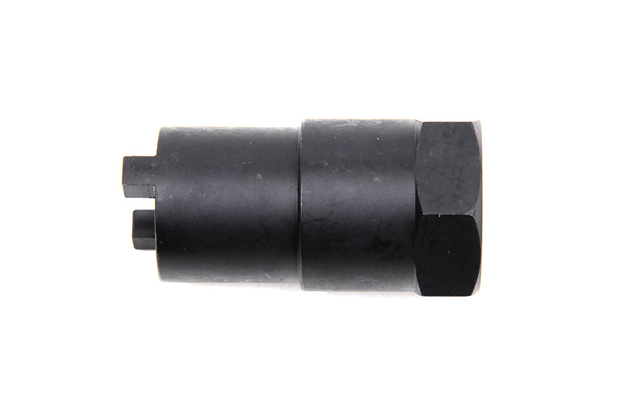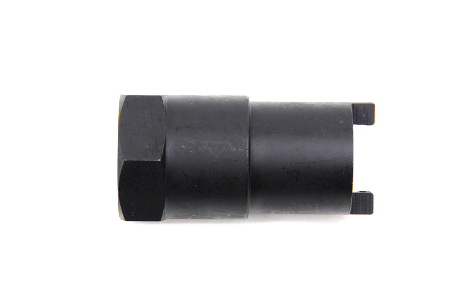 Spark plug tool features a parkerized finish and is for use with OE Harley 18mm plugs. Designed to fit within the slots in order to disassemble the plugs.