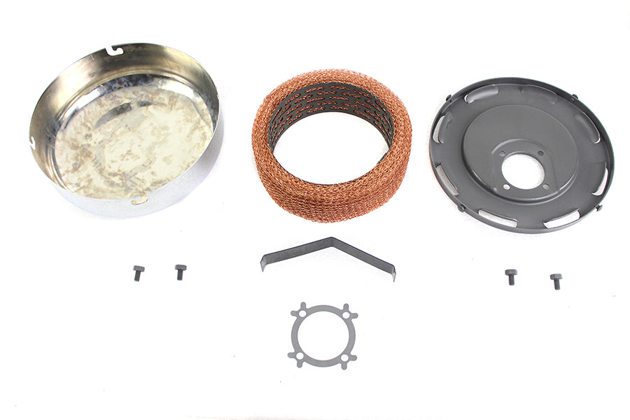 7 chrome j slot air cleaner includes a copper element 4 j slot chrome cover parkerzied backing plate and mount screws. For use with 4 bolt linkert carburetors. *NOTE: New Old Stock from 1981.